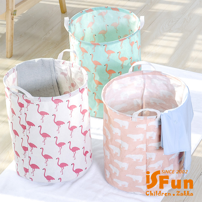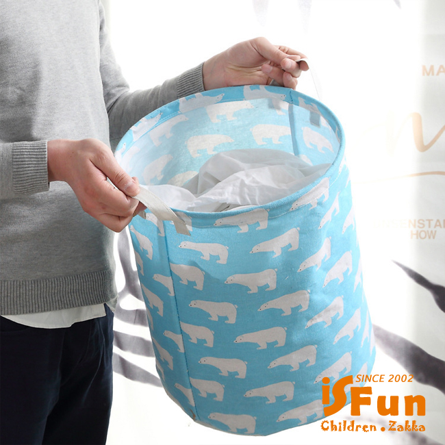 【iSFun】動物棉麻*防水摺疊手提收納洗衣籃/粉北極熊