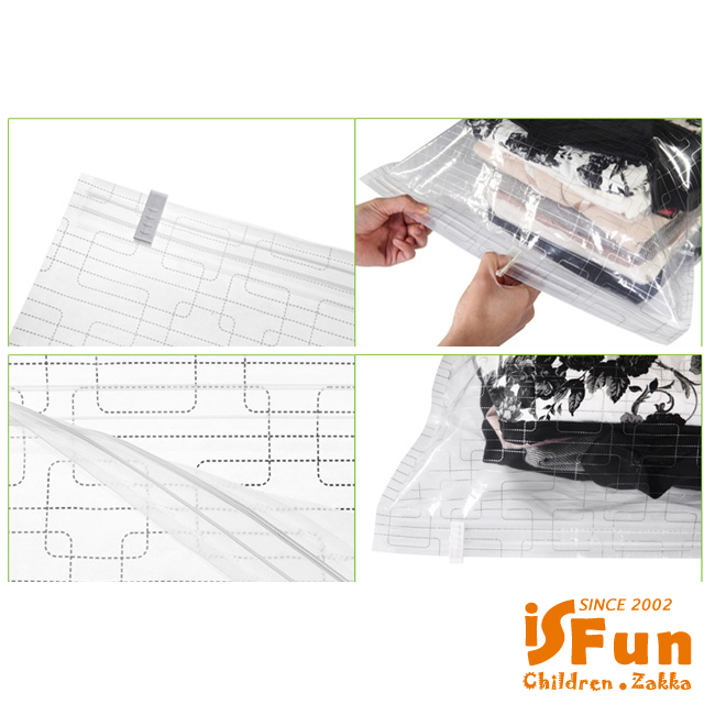 使用方式:將開口打開放入衣物,密封來回將滑片多拉幾次,可使用家中吸塵器抽氣(商品不含吸塵器或抽氣用品)