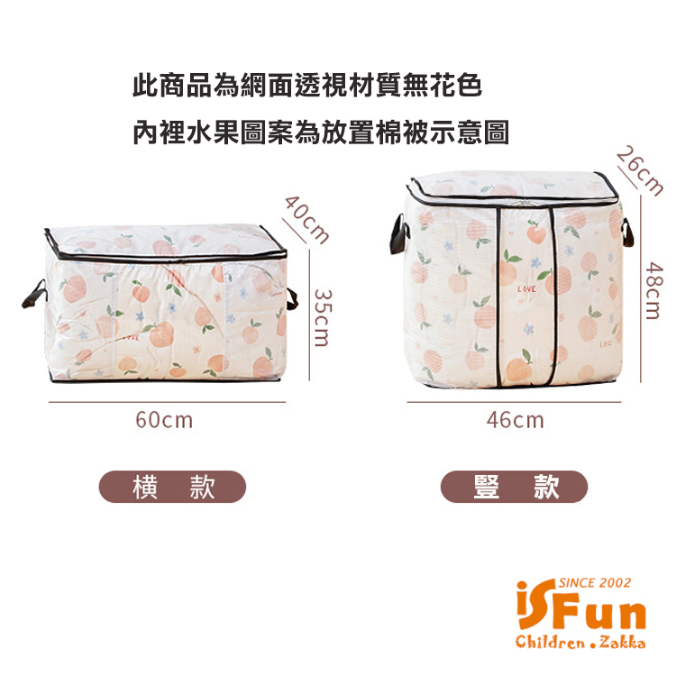 備註:此商品為網面透視材質無花色,內裡水果圖案為放置棉被示意圖
