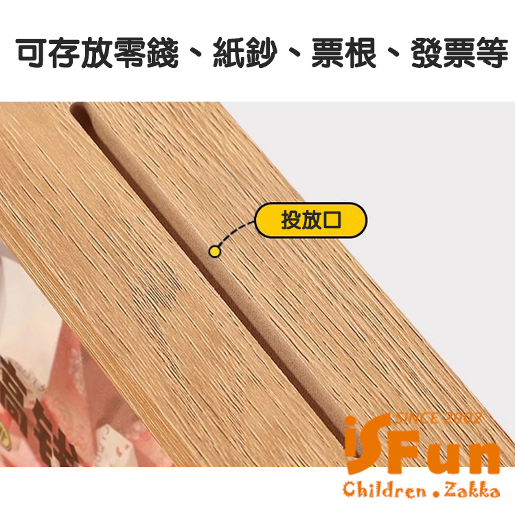 實木邊框超有質感,頂部開口大,可放鈔票/零錢,
