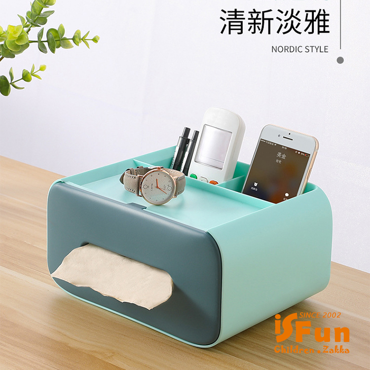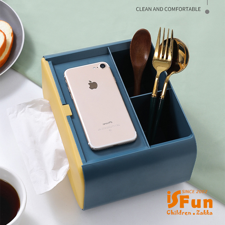 【iSFun】歐風雙色*桌面收納抽取式面紙巾盒/天藍