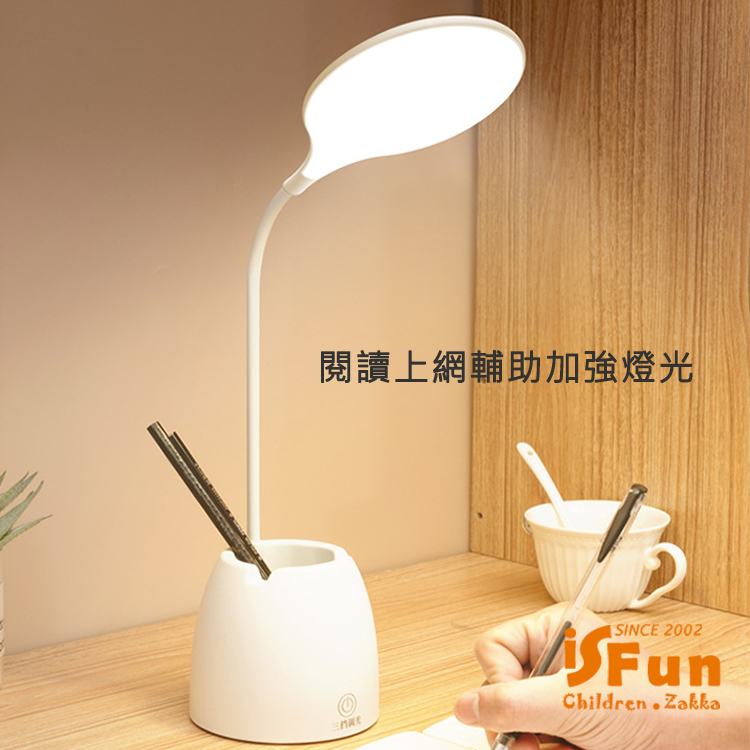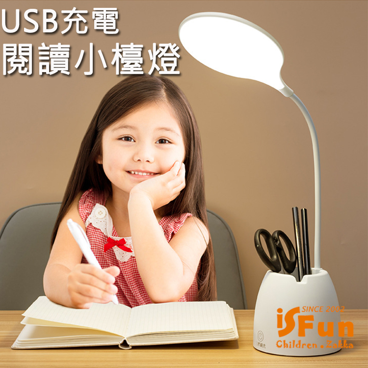 【iSFun】閱讀幫手*USB充電可彎曲手機支架檯燈/粉