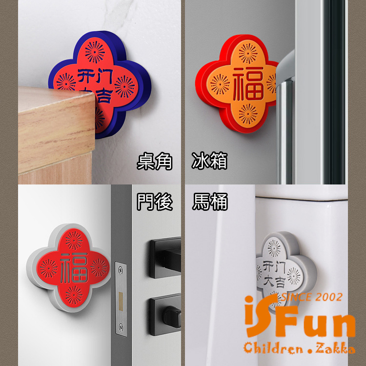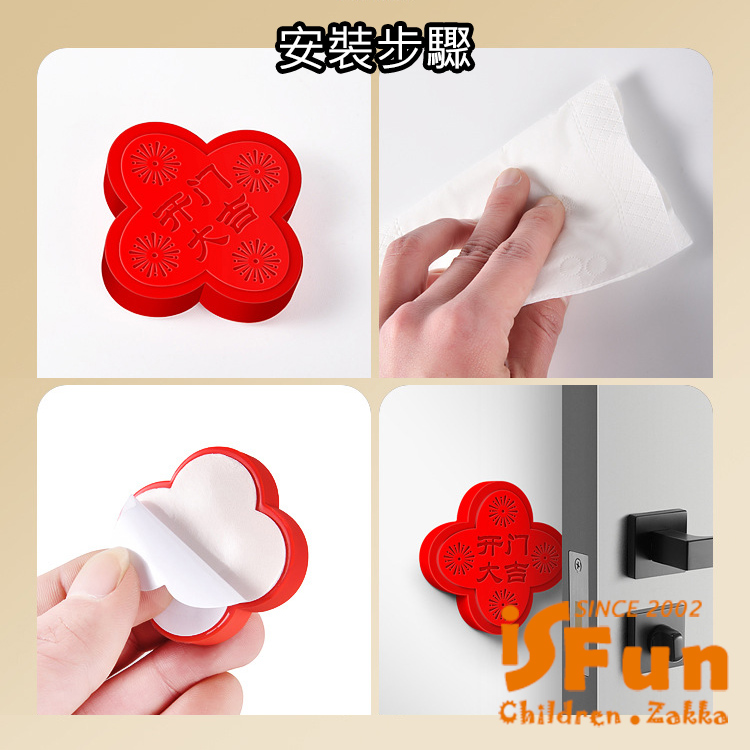 【iSFun】福氣滿滿 門把靜音緩衝防撞壁貼墊/4入隨機色