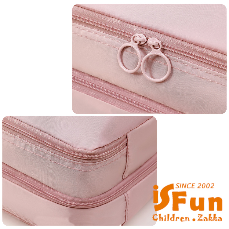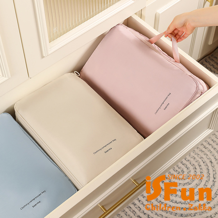 【iSFun】雙層收納 居家旅行手提壓縮袋/淺粉