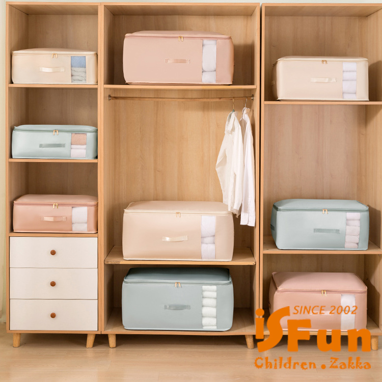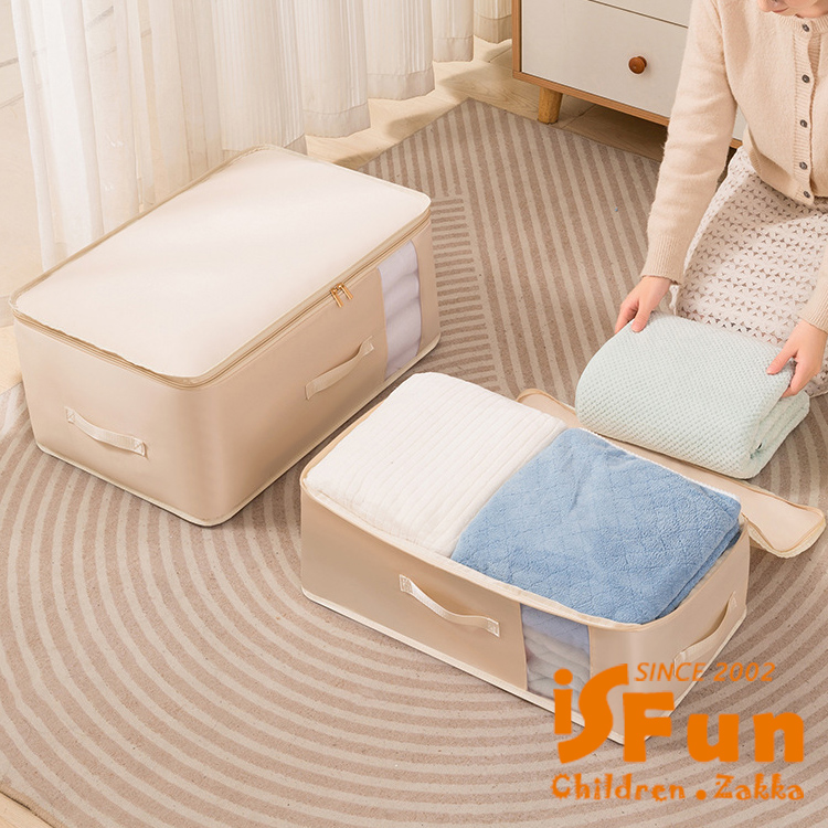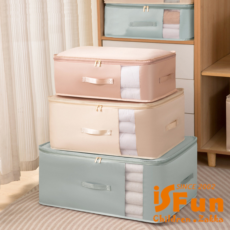 【iSFun】透視收納 大容量防潮衣物棉被透氣收納袋/大號粉