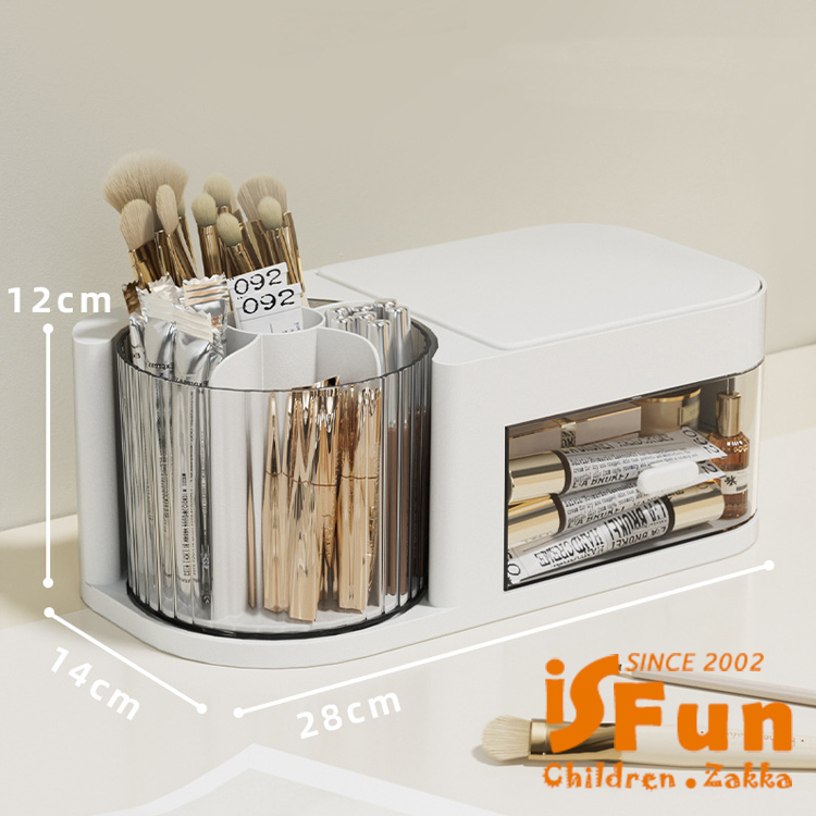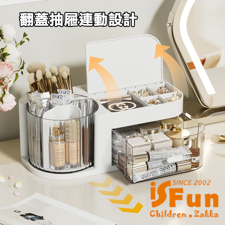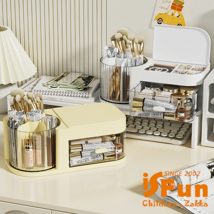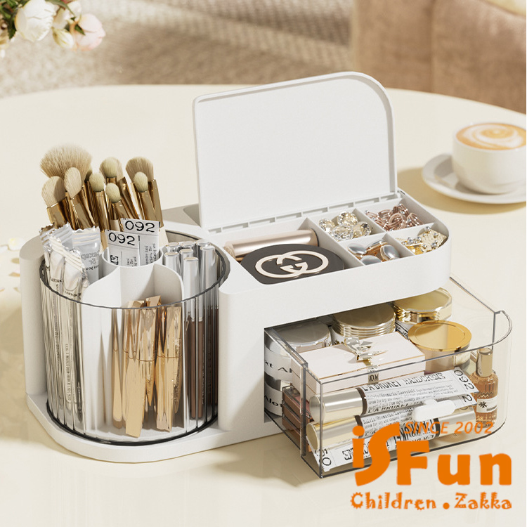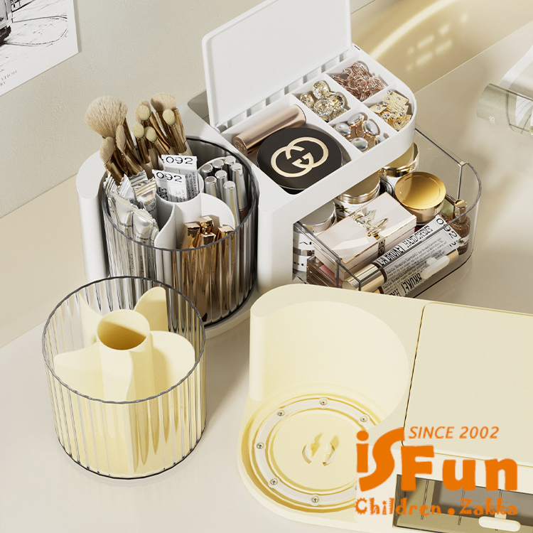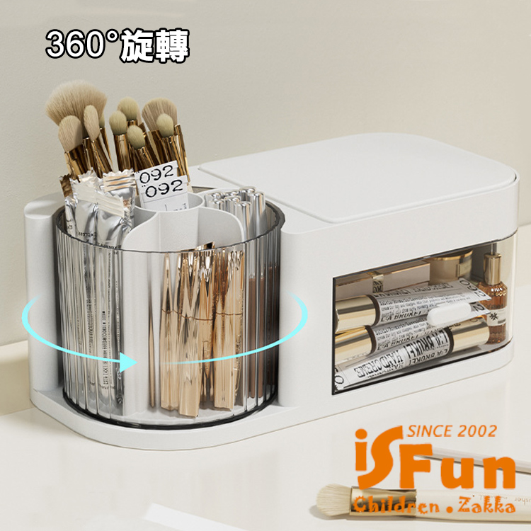 獨特360度旋轉收納桶,讓存取化妝品變得更加方便!