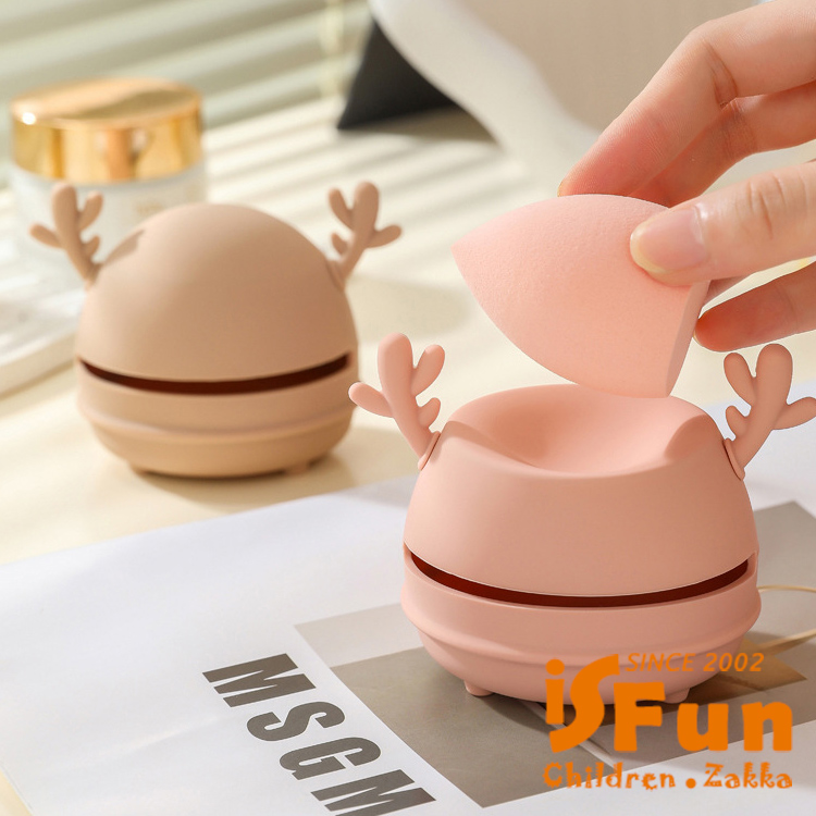 萌趣鹿角造型,透氣美妝蛋收納盒,適合外出或居家使用。