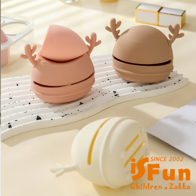 【iSFun】鹿角收納 創意矽膠粉撲美妝蛋盒/一組2入