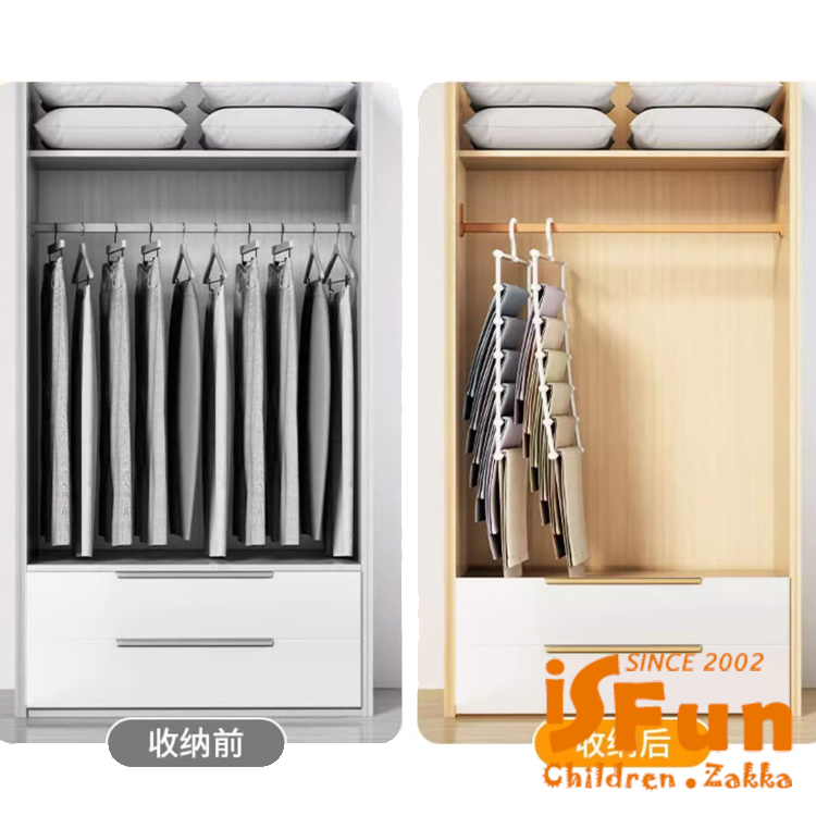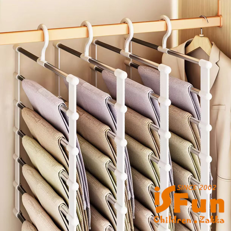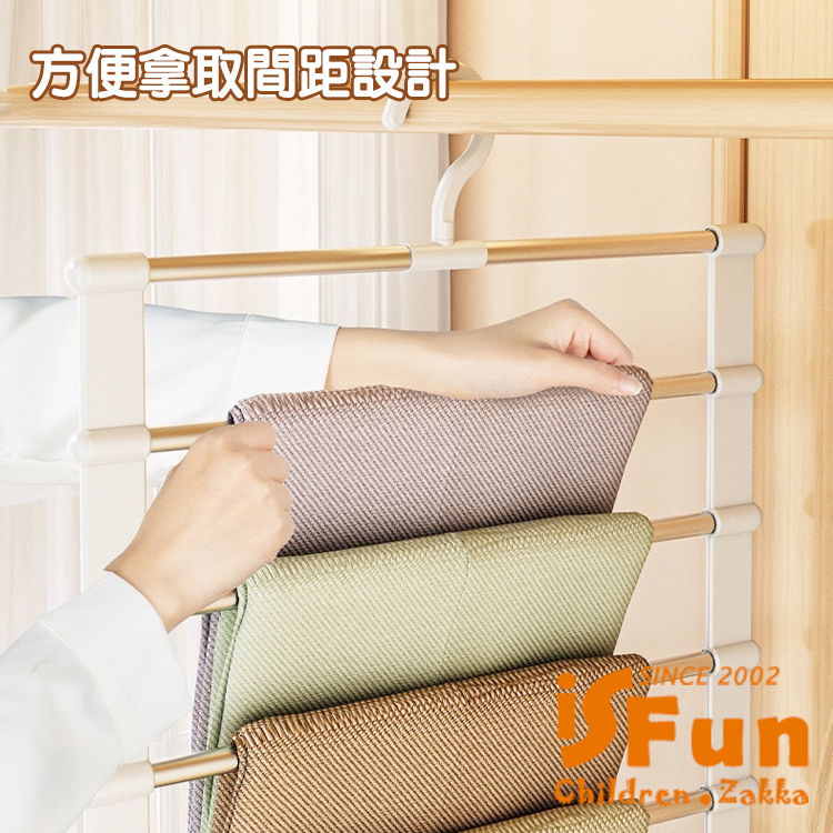 【iSFun】多功能衣架 雲梯衣褲圍巾無痕摺疊收納/7層款