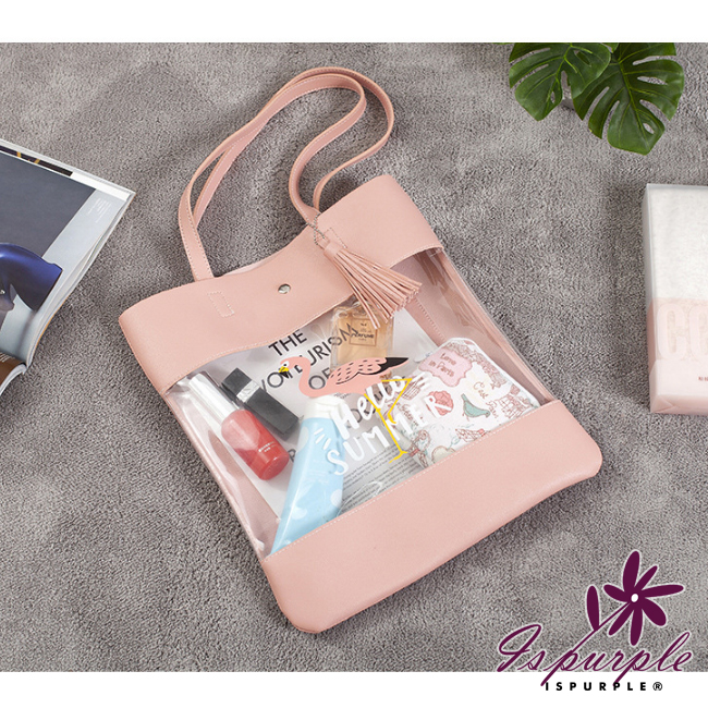 【iSPurple】透視丹頂鶴*PVC皮革大容量流蘇肩背包/粉