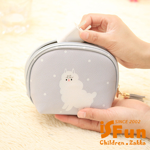 【iSFun】可愛動物*可放手機皮革化妝收納包/灰羊駝