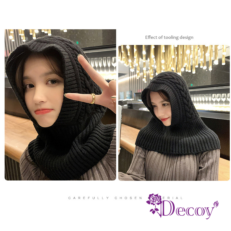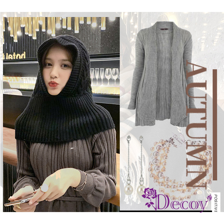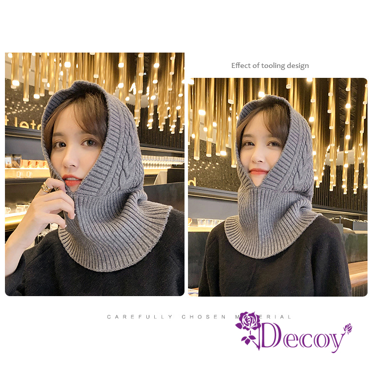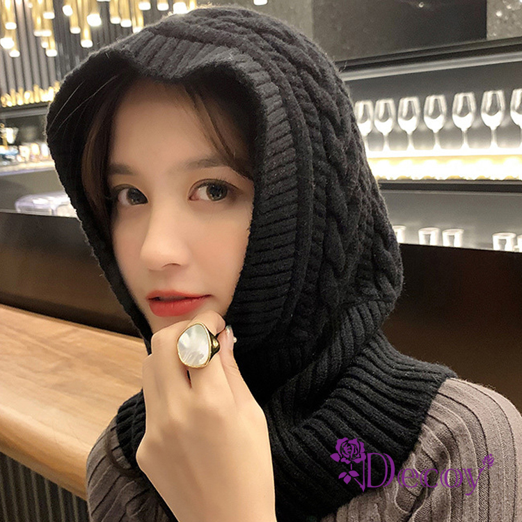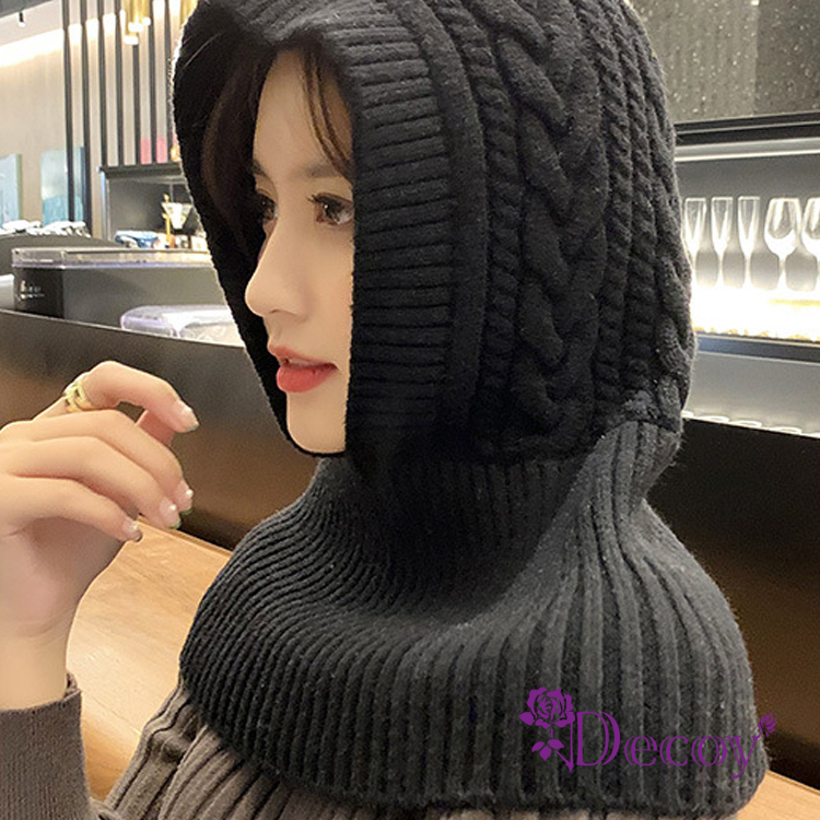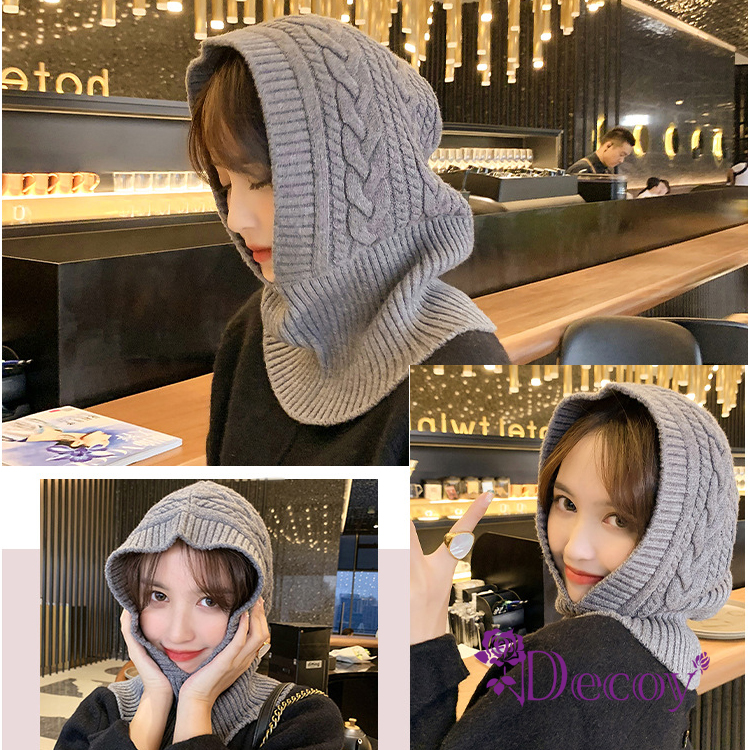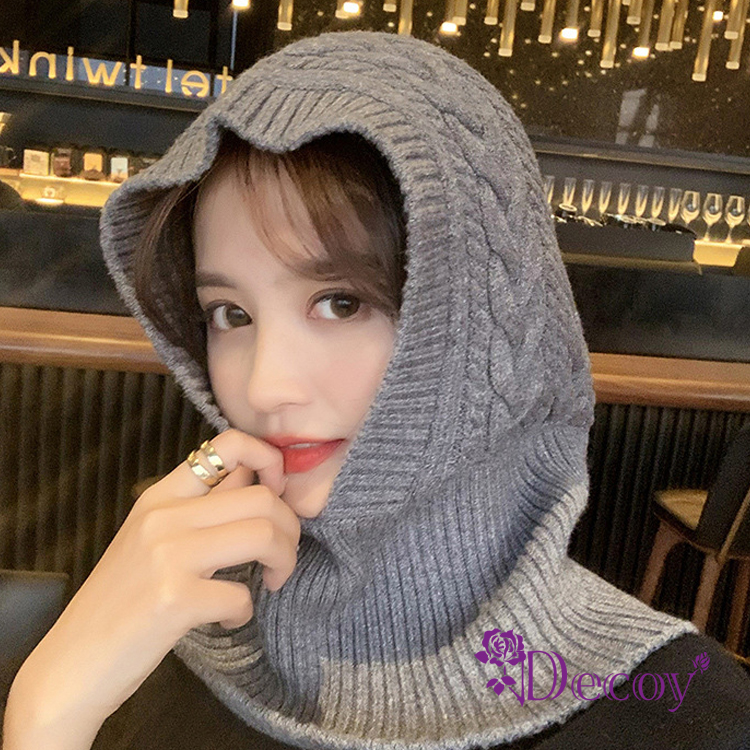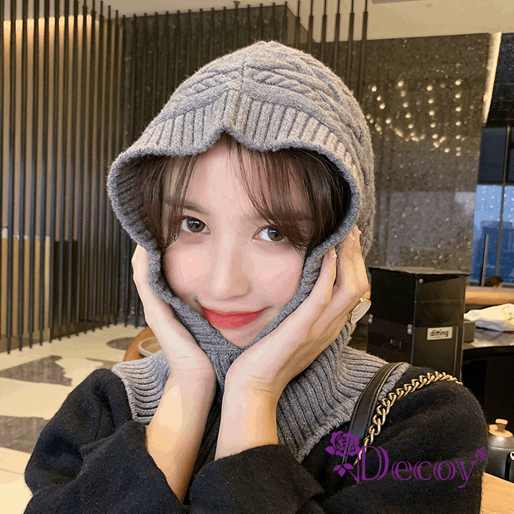 【Decoy】針織麻花*連帽加厚防風護耳脖圍帽/灰