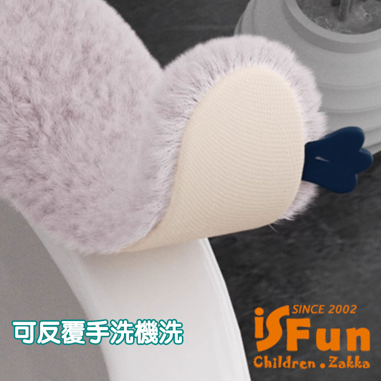 【iSFun】衛浴暖坐 毛絨熊熊加厚魔鬼氈馬桶坐墊2對/藍